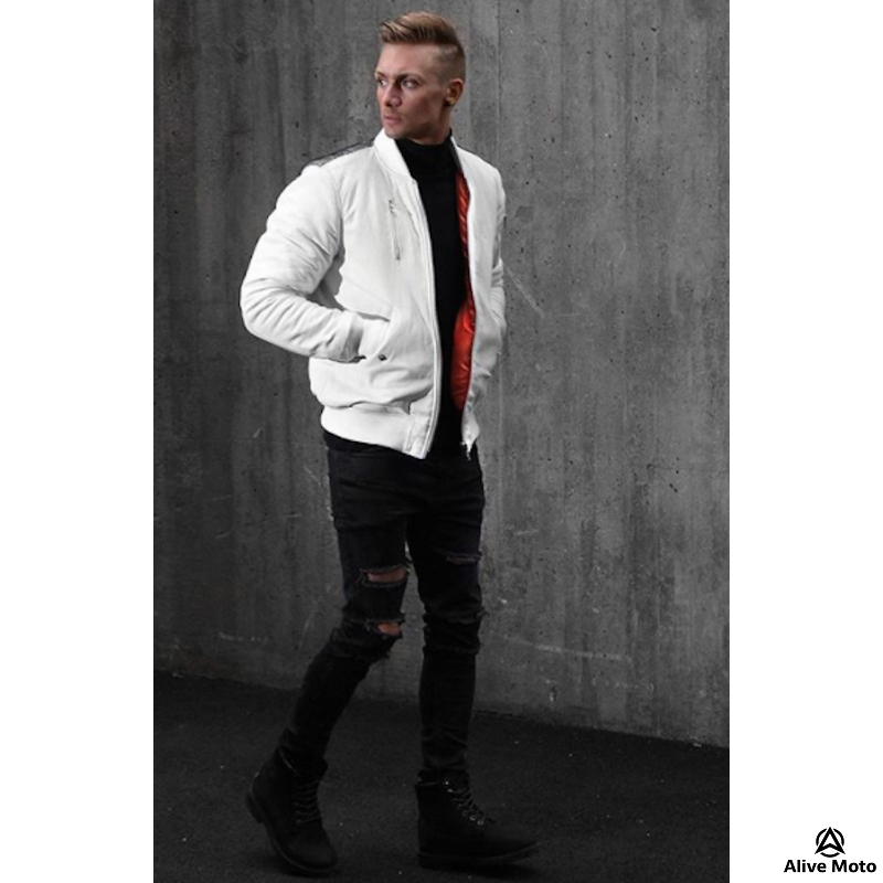 Full White Bomber Leather Jacket, aforementioned, Nubuck Leather Aviator Jacket is a quintessential jacket which is an absolute choice to wear for Winter as it just does not give off some mesmerizing looks, but it will also keep you comfortable throughout the season. It's fine and detailed stitching highlights the impressiveness of this jacket so that whenever or wherever you wear it, you just keep indulging everyone. Also, the fabric of this jacket is one of the best fabrics that you will find anywhere. You cannot just wear this jacket casually, but formally as well.