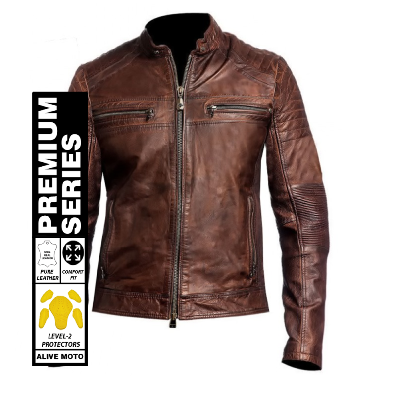 The perfect blend of comfort and protection, premium jacket, crafted from genuine cow vintage brown leather. This specially treated leather offers exceptional softness and durability, enhancing both the look and lifespan of the jacket.