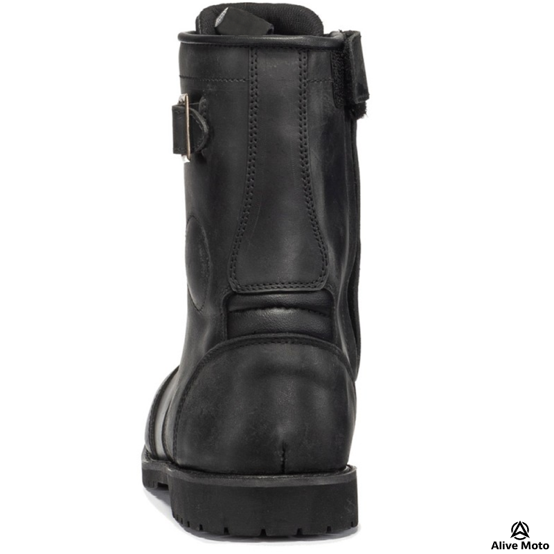 The Black Distressed Heritage Custom Touring boots offer an exceptional fit and durability. This robust model features an extra reinforced insole, an extra reinforced outsole, and added protection for both ankles.
