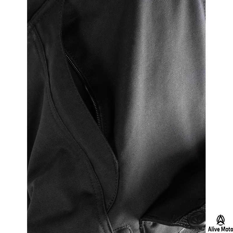 Our motorcycle textile trousers are made for all weather conditions, with a windproof membrane and an aquafeed ventilation system for maximum comfort. With a highly breathable shell and hydrate membrane technology, they repel moisture while providing superior abrasion resistance. The adjustable two-way flexi snap collar, variable height strap, and Dupont Kevlar reinforcements ensure durability and comfort. Additionally, CE Level-2 protectors at the shoulders, elbows, and back offer excellent protection, making these trousers the perfect blend of functionality and safety for any ride.