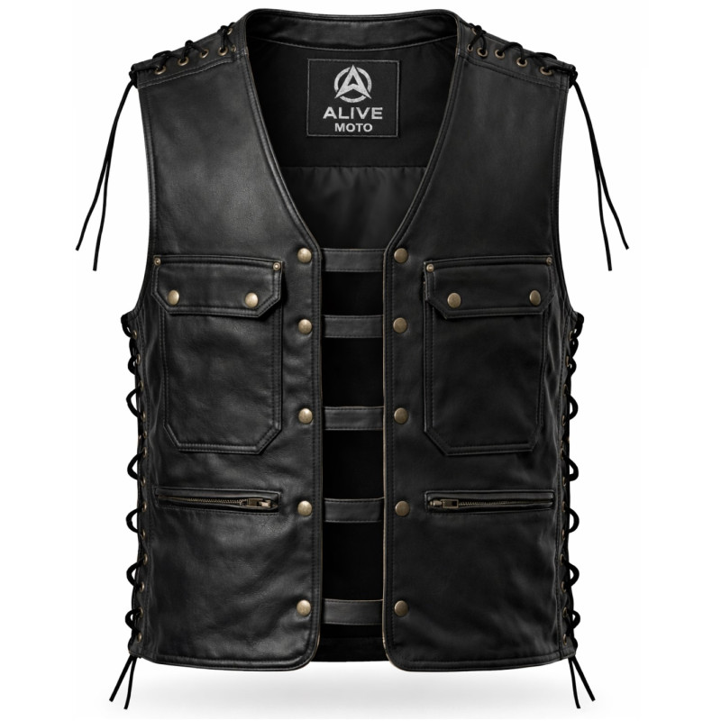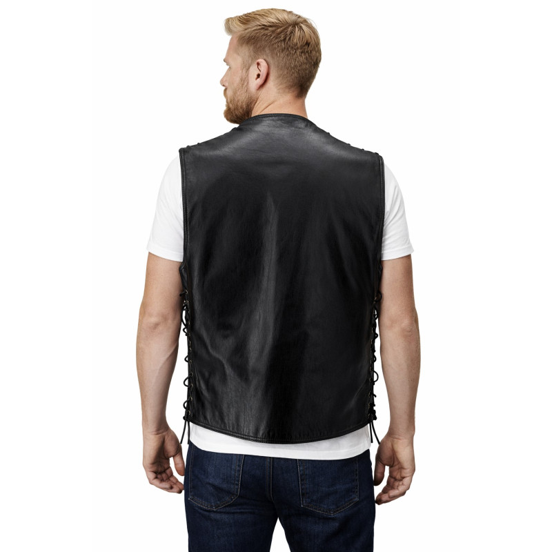 This motorcycle vest is crafted from high-quality cowhide leather, specially treated for softness and exceptional comfort. It stands out as an essential piece of gear for any motorcycle enthusiast, elevating the standard of biker apparel. Inside, premium fabric lining enhances not only the vest's comfort but also adds an extra layer of protection, all while maintaining a stylish appearance. Designed for a relaxed fit, this vest ensures that riders can enjoy a smooth and comfortable journey. Its versatile design allows it to be worn casually over a shirt, making it a perfect expression of individual style and personality. Note that this vest is tailored to be slightly larger than typical sizes, facilitating easy layering over jackets.