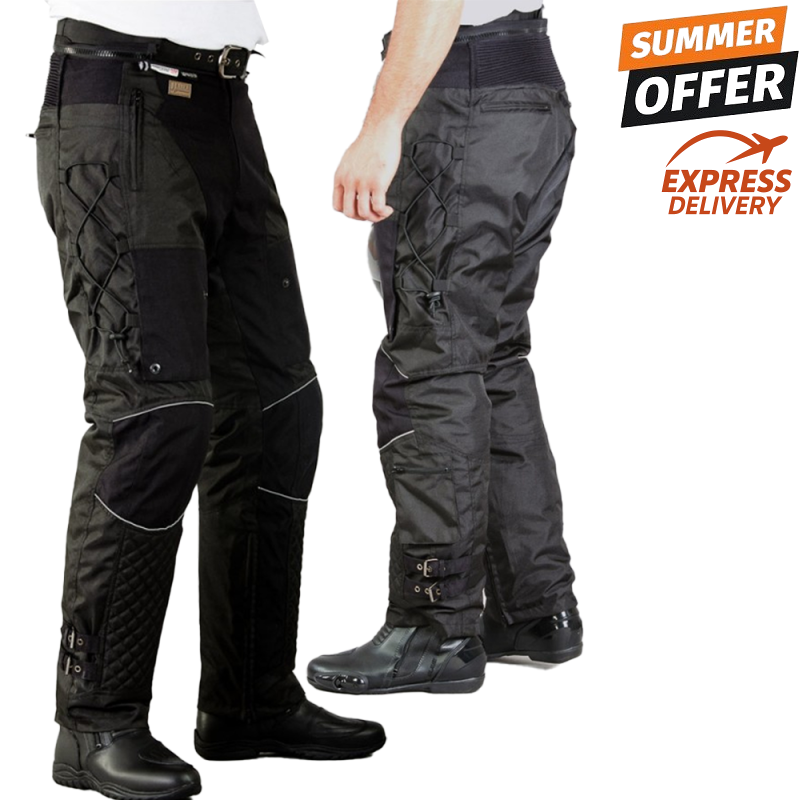 The Tourch Textile Black Motorcycle Trouser, the ultimate evolution of adventure gear designed for every ride. Crafted from lightweight polyester with elastic panels, these versatile pants feature a removable thermal lining and breathable thigh vents, ensuring comfort in any weather. With CE level 2 knee and hip protections, multiple pockets, and adjustable fittings, they're the perfect blend of safety and style for the modern motorcyclist. Embrace the journey with unmatched comfort and confidence.